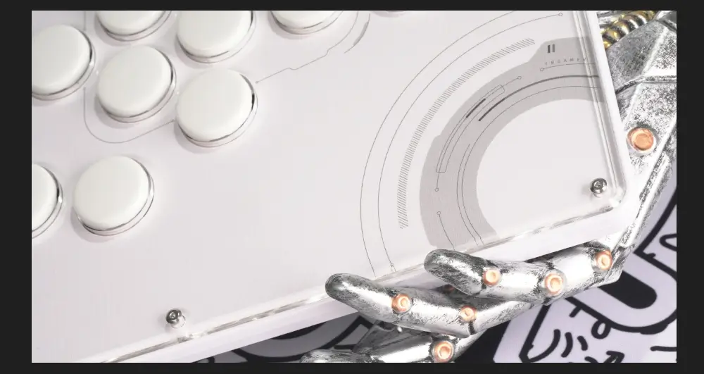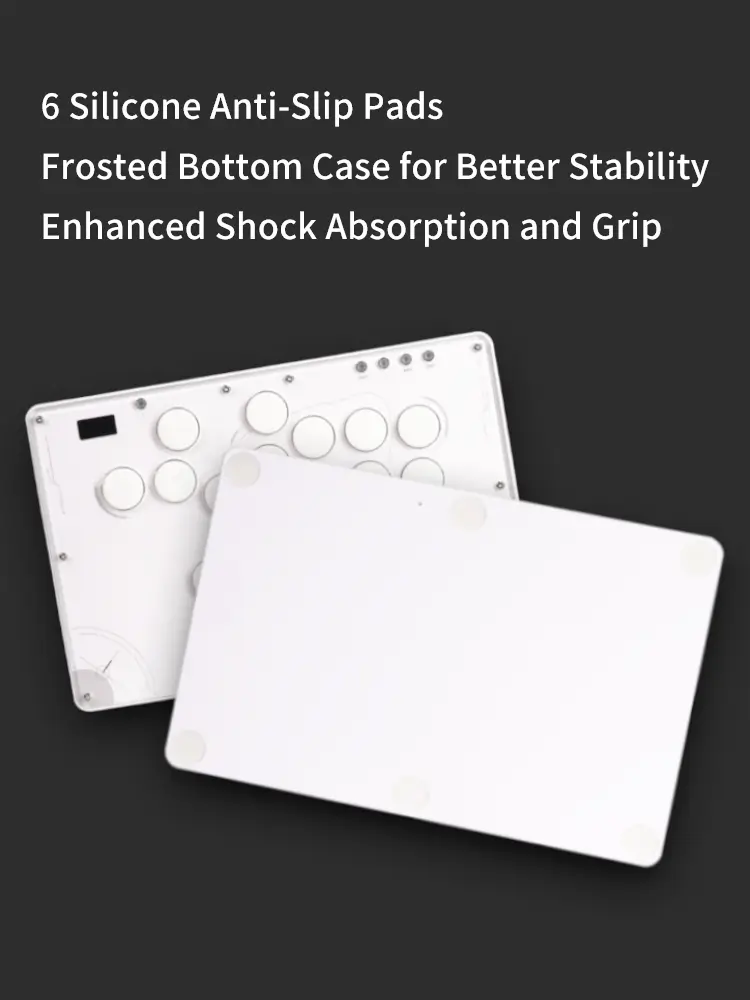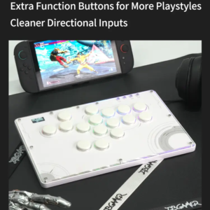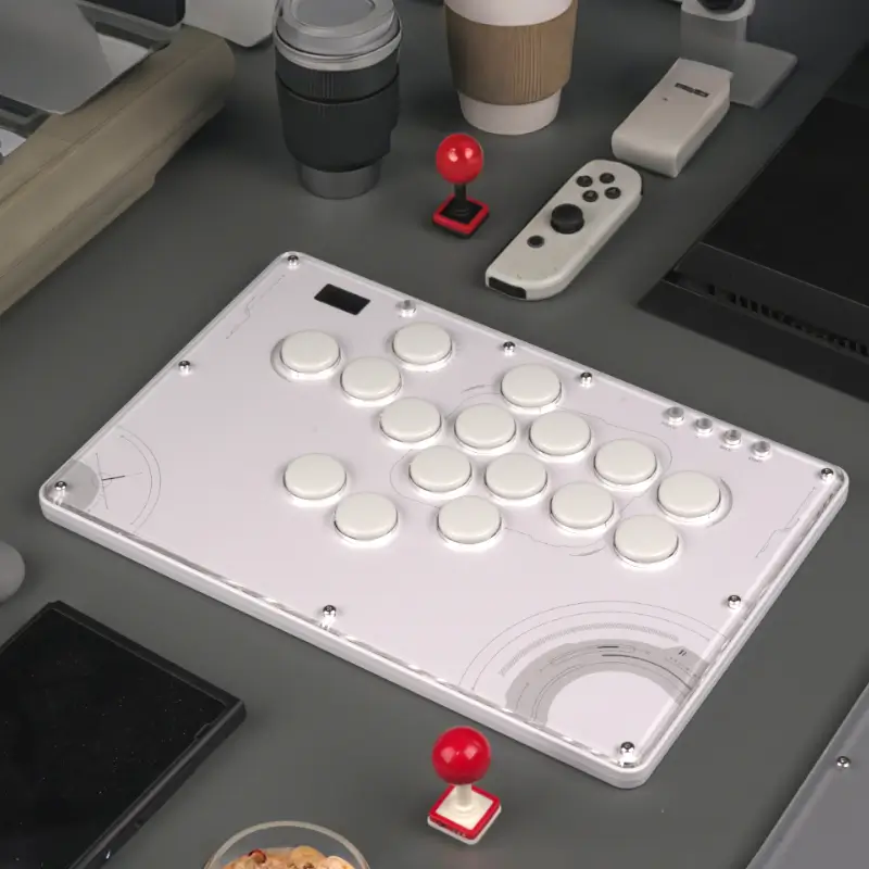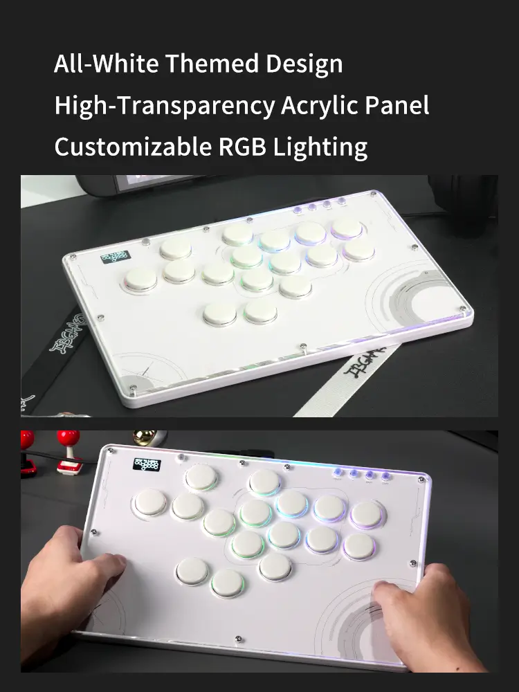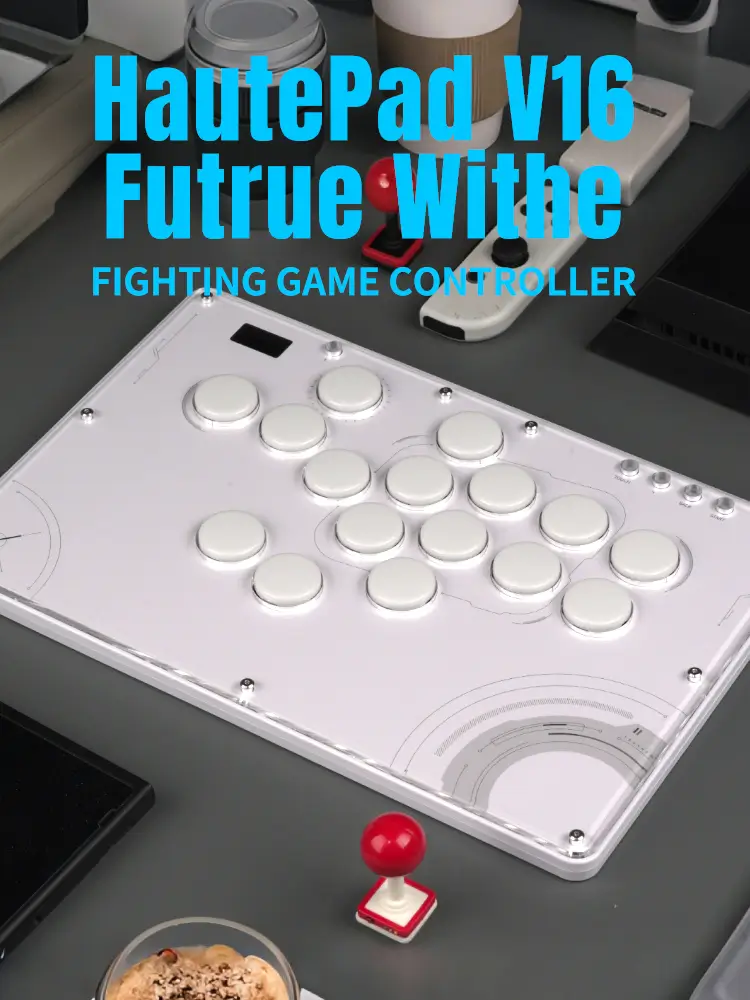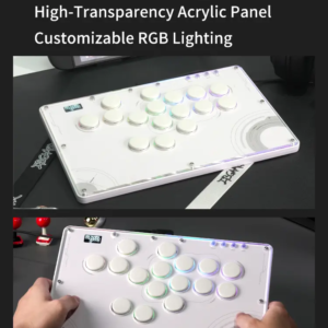 The Haute42 TBGamer V16 Future White Leverless Arcade Controller is not just a gaming accessory; it’s a statement of style and functionality. The controller’s design is a nod to the future with its white themed aesthetics and high-transparency acrylic panel that showcases the internal components. The frosted bottom case not only adds to the sleek look but also serves a practical purpose by providing shock absorption, ensuring longevity and durability.