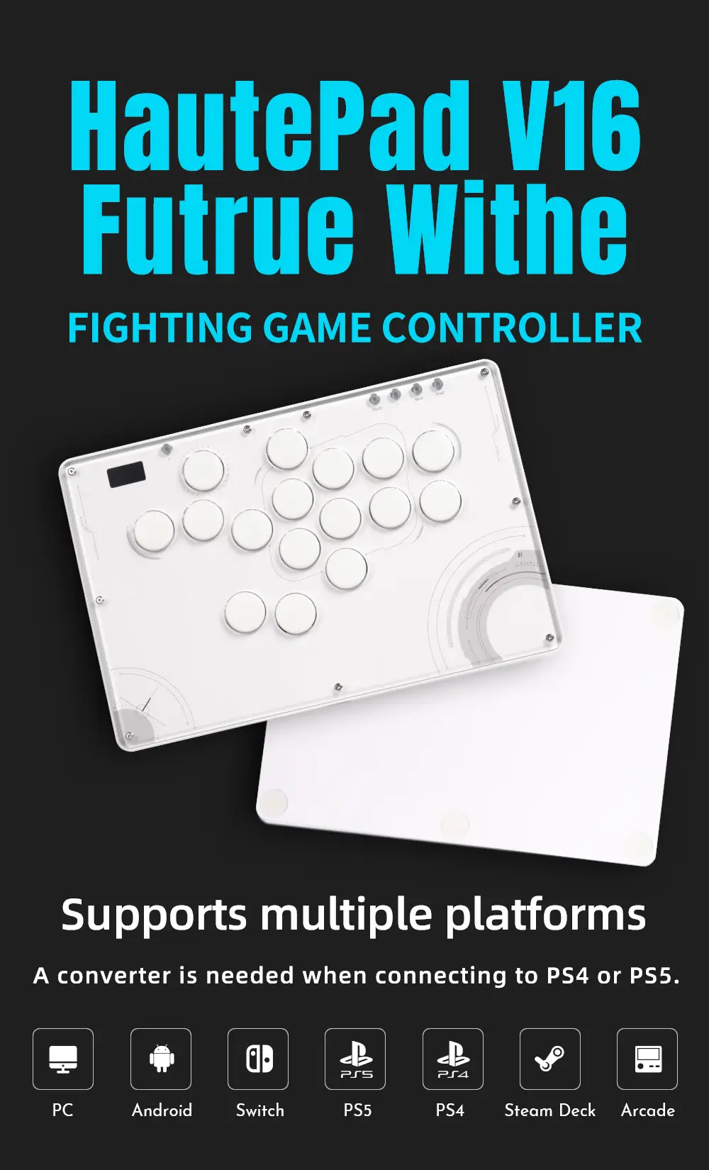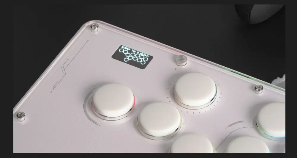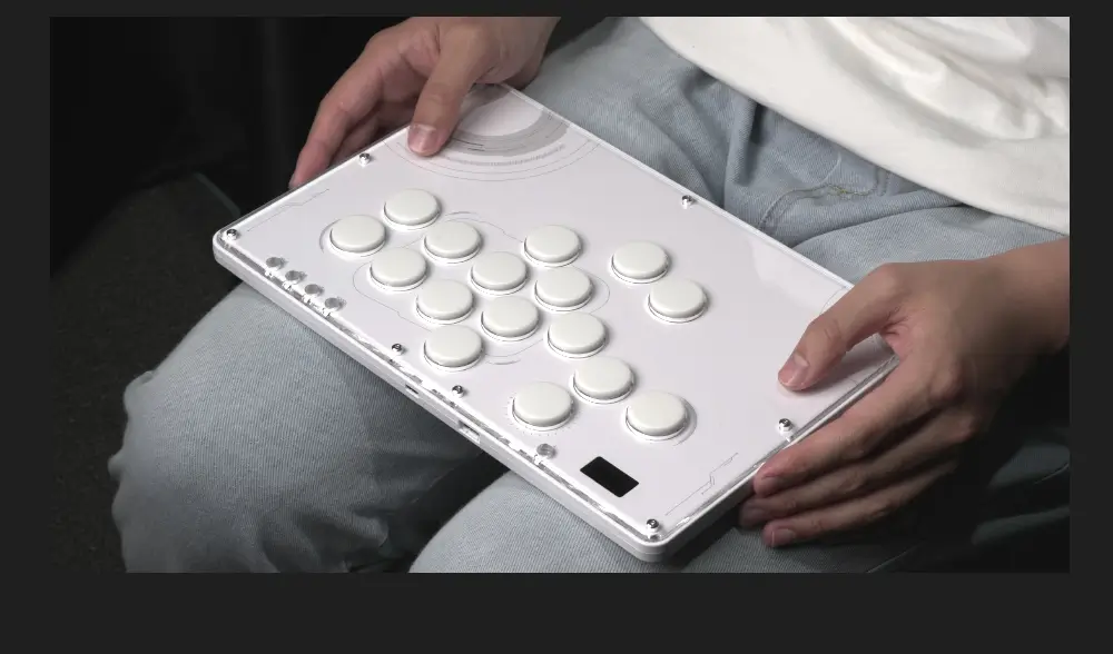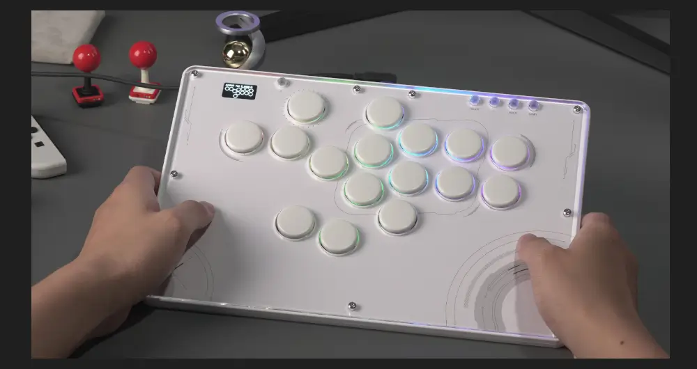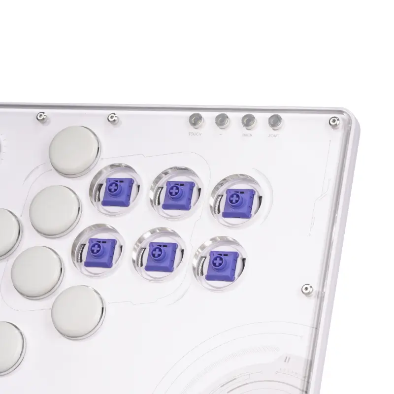 The Haute42 TBGamer V16 Future White Leverless Arcade Controller is not just a gaming accessory; it’s a statement of style and functionality. The controller’s design is a nod to the future with its white themed aesthetics and high-transparency acrylic panel that showcases the internal components. The frosted bottom case not only adds to the sleek look but also serves a practical purpose by providing shock absorption, ensuring longevity and durability.